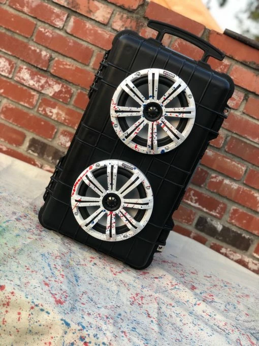The Banger Box XL is our biggest and loudest speaker box to date. This Waterproof bluetooth speaker is banging two Kicker Marine Grade 8” 2- way speakers and over 400 watts of power. It is the perfect speaker for any outdoor event, and if your looking to get the cops called on your house party, say no more this is the one.