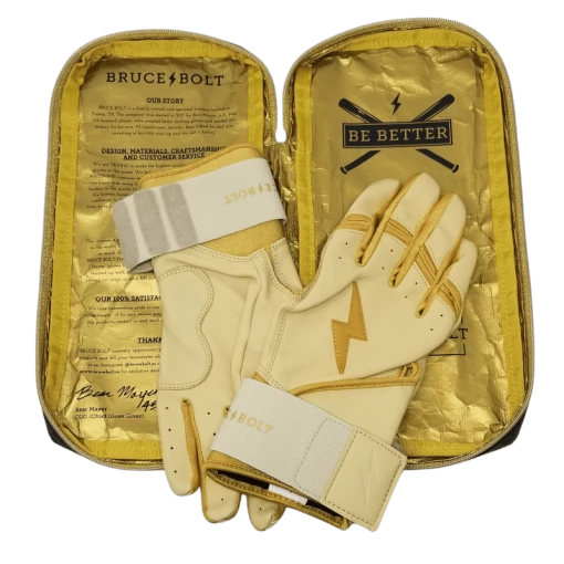 BRUCE BOLT is the newest name in baseball. Their batting gloves are some of the highest quality, best fitting, most durable gloves in the game. The GOLD SERIES Long Cuff gloves are made from ultra premium 100% 1.2mm Cabretta leather and are designed to fit the nuances of the human hand better. Each pair of BRUCE BOLT gloves are handmade by highly skilled craftsmen. It’s unlike any other glove out there.