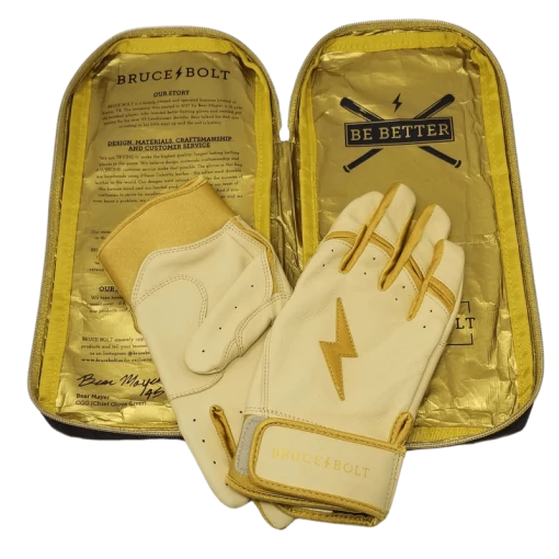 BRUCE BOLT is the newest name in baseball. Their batting gloves are some of the highest quality, best fitting, most durable gloves in the game. The GOLD SERIES Short Cuff gloves are made from ultra premium 100% 1.2mm Cabretta leather and are designed to fit the nuances of the human hand better. Each pair of BRUCE BOLT gloves are handmade by highly skilled craftsmen. It’s unlike any other glove out there.