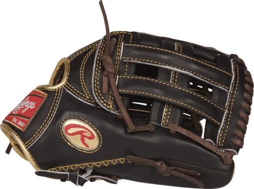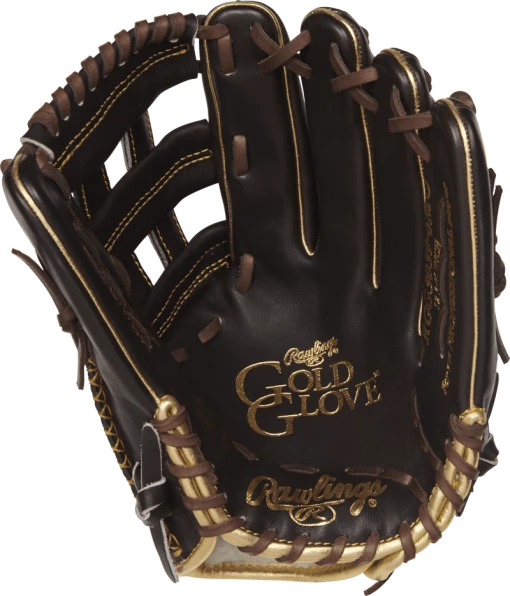 This Rawlings Gold Glove Baseball Glove (RGG3039-6MO) features a 12 3/4-inch size, a pro-H-web, and a conventional open back with gold trim. Due to the larger size and web, this model is recommended for adult and elite outfielders.