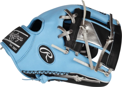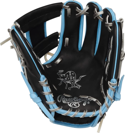 Add some flair to your game with the Heart of the Hide ColorSync 5.0 11.5-inch infield glove. It was artfully constructed from our ultra-premium steer-hide leather to give you superior quality and performance every inning out. This ColorSync glove features a stylish Columbia blue & black design with a unique two-tone black/platinum I-web. It even has a special black/silver Rawlings ColorSync patch to tie it all together, too.