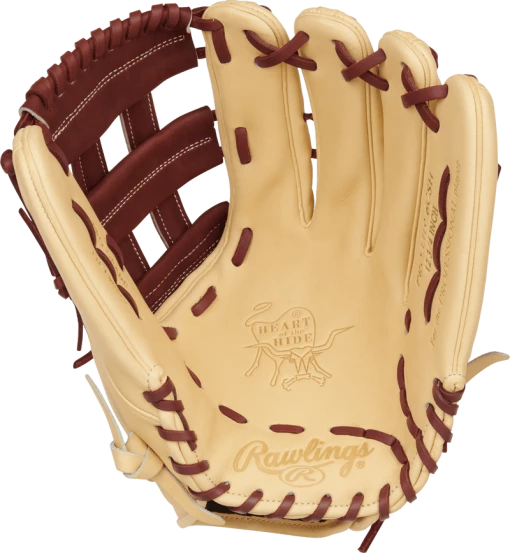 The Heart of the Hide ColorSync 5.0 12.75-inch outfield glove was masterfully crafted from ultra-premium steer-hide leather. The camel speed shell back provides a lighter feel and superior durability, and adds the perfect touch to the classic camel/dark sherry design. As a result, this HOH outfield glove will help take your game to the next level in style.